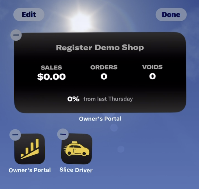 If the widget says Connect to Slice, make sure you are logged into the Owner’s App and have allowed access
