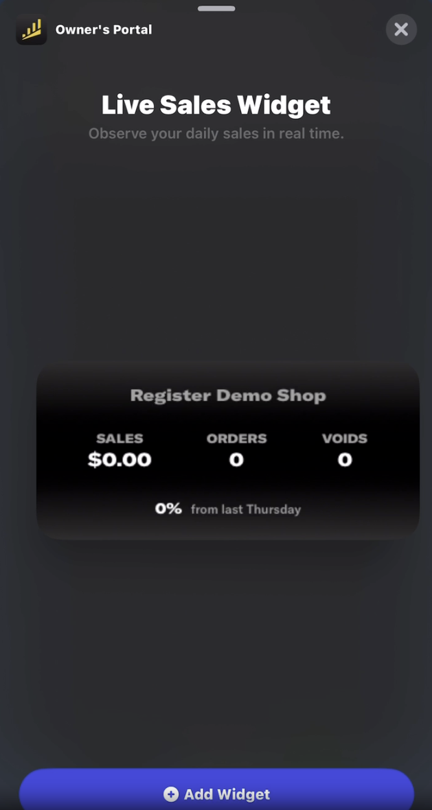 Owner’s App Live Sales Widget