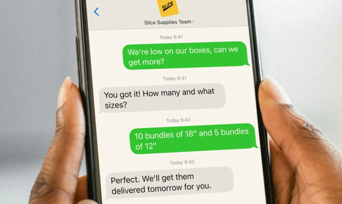 "Huge shout-out to Slice for the pizza boxes and best ordering system on the planet."